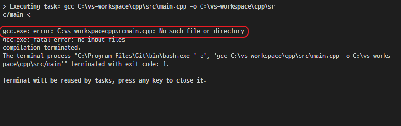gcc.exe: error: C:vs-workspacecppsrcsolution1.cpp: No such file or directory
